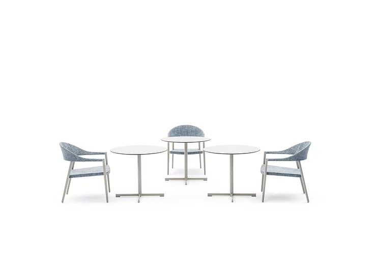 La base Summer Set low può essere personalizzata con diverse tipologie di piano, rotondo o quadrato, per integrarsi al meglio in qualsiasi spazio outdoor.